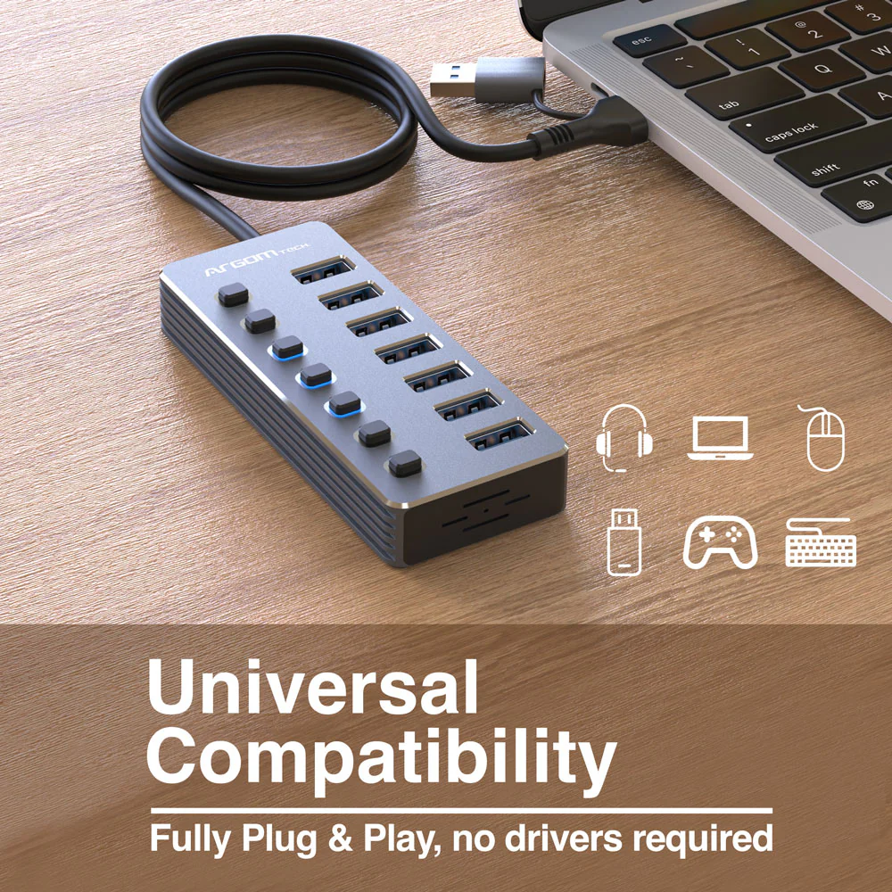 ArgomTech – One Axess 2-in-1 Type-C/USB 3.0 to 7-Port USB 3.0 Hub with Switches – UB-0191