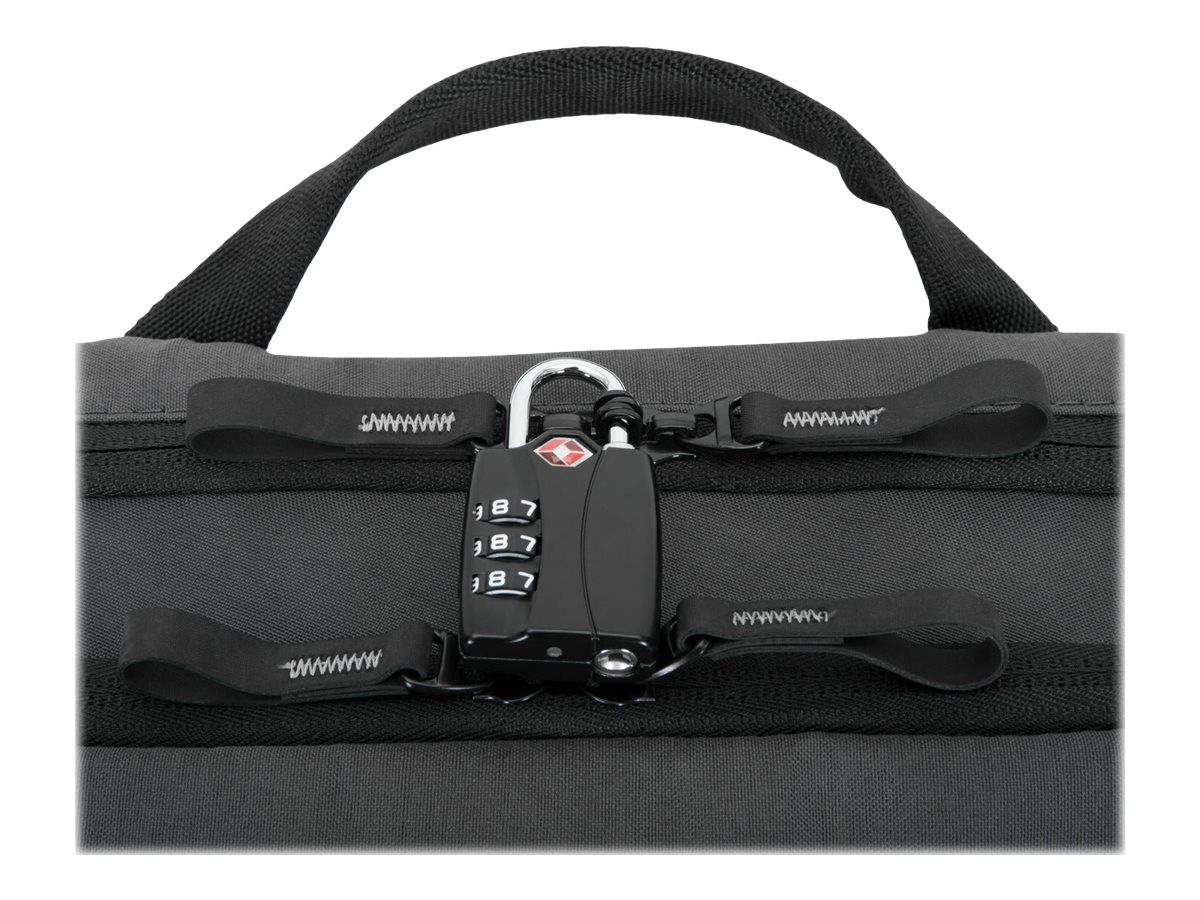 | Features | Padded notebook compartment, lockable zipper, cable pass-through |
