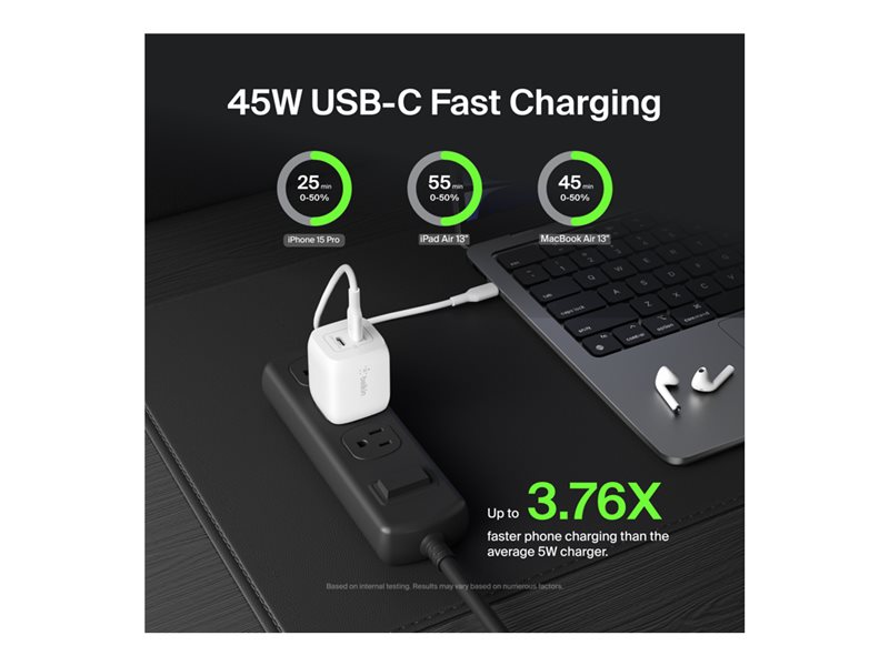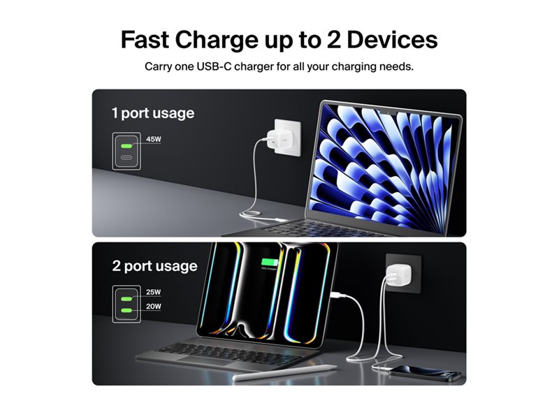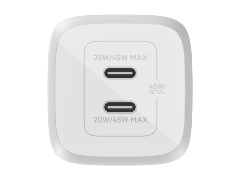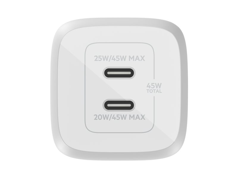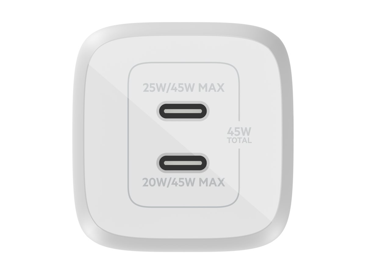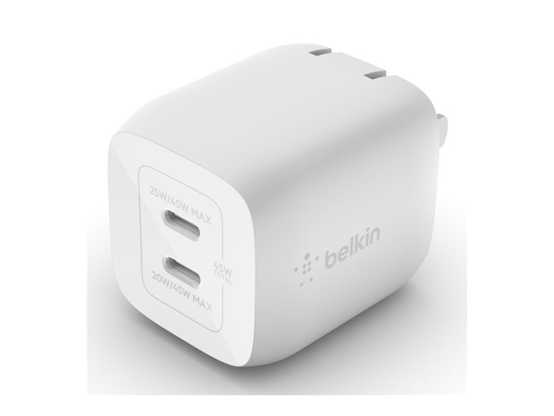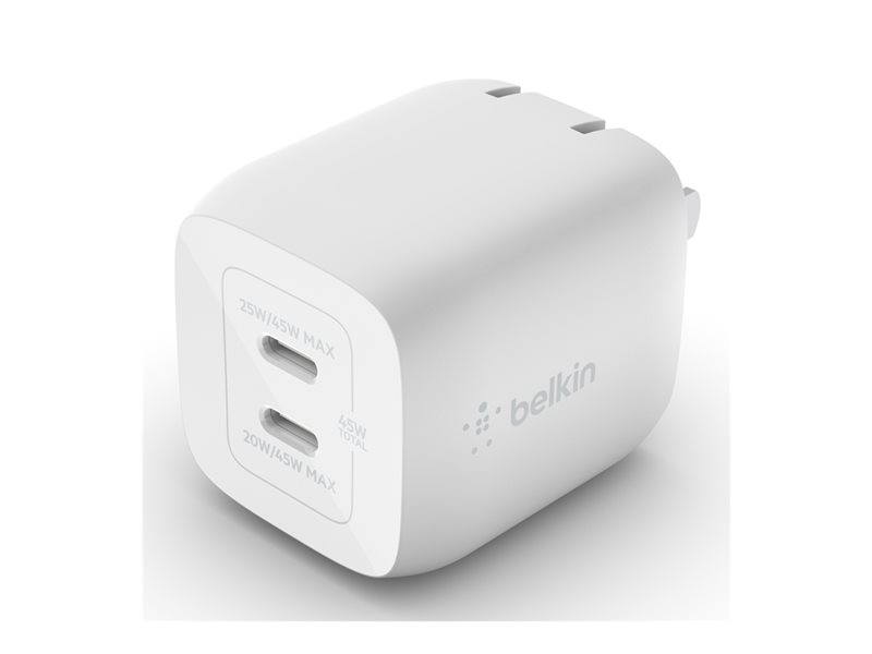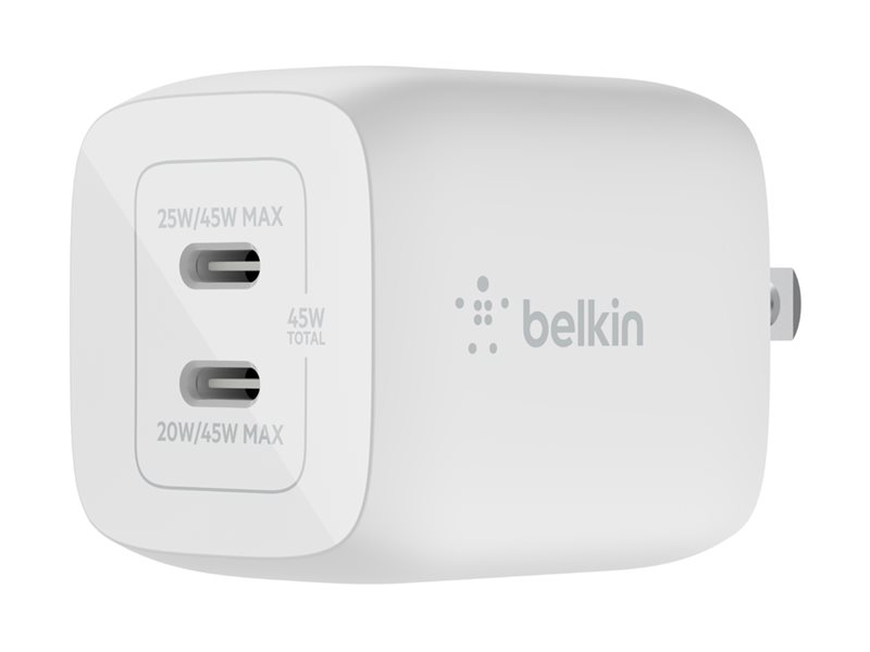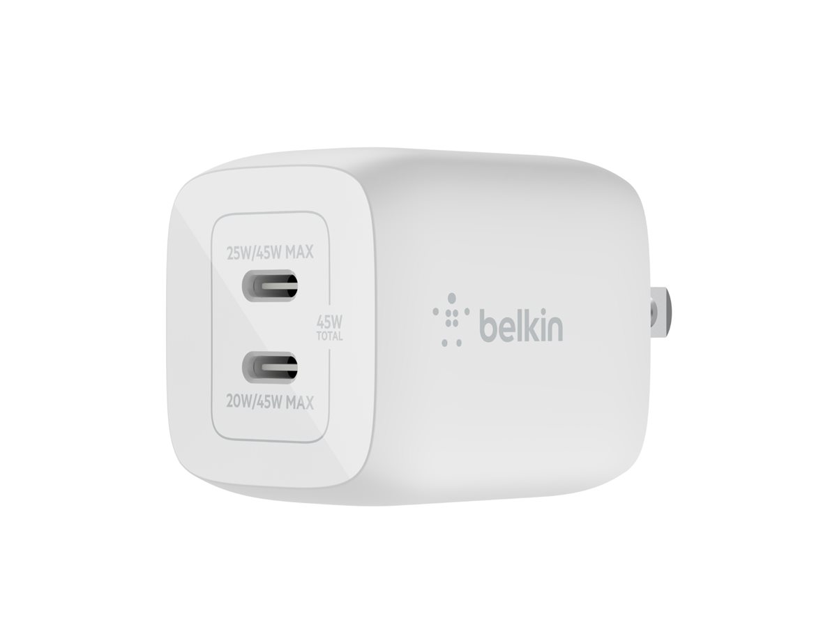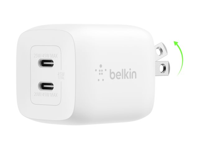 | Product Description | Belkin BoostCharge Pro power adapter – PPS and GaN technology – 2 x USB-C – 45 Watt |