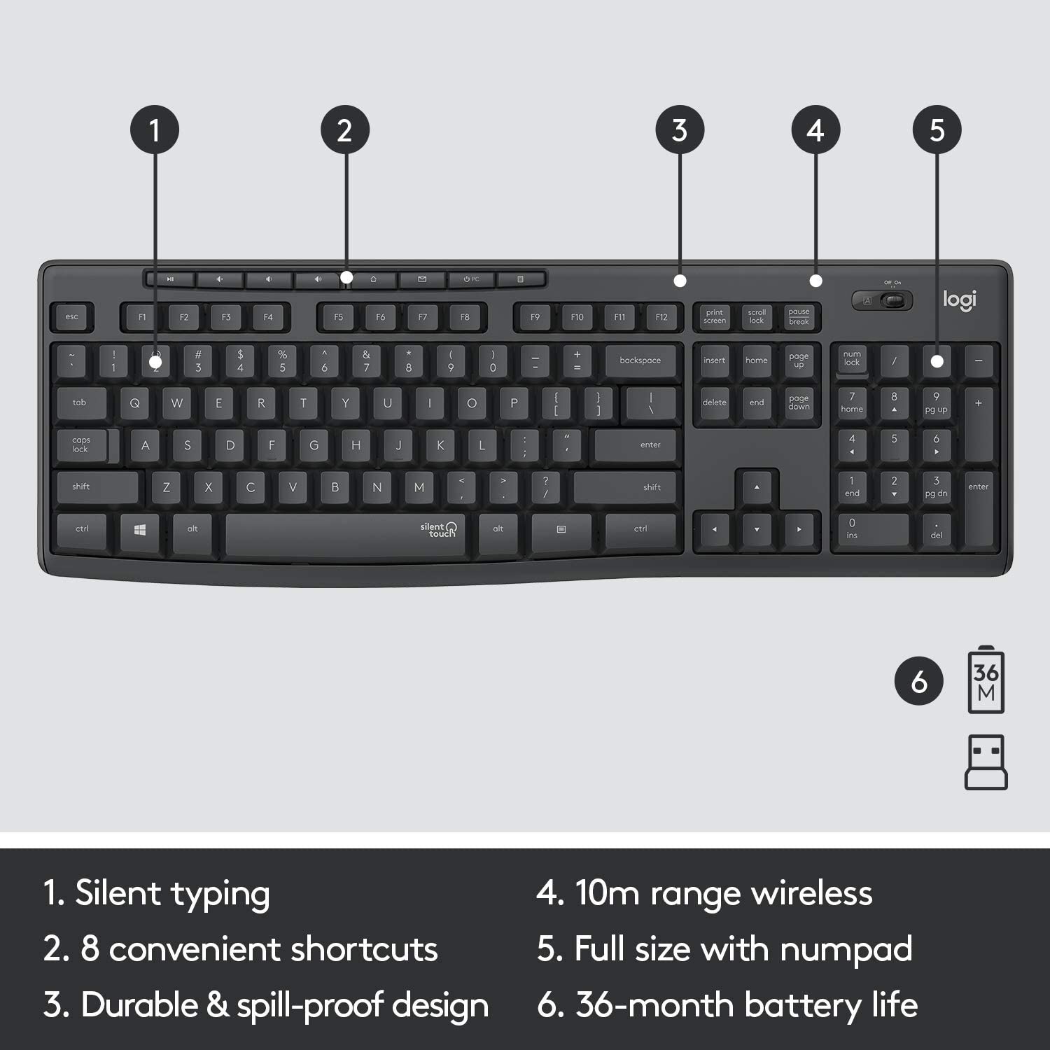Logitech MK295 Silent - Keyboard and mouse set - wireless - 2.4 GHz - graphite