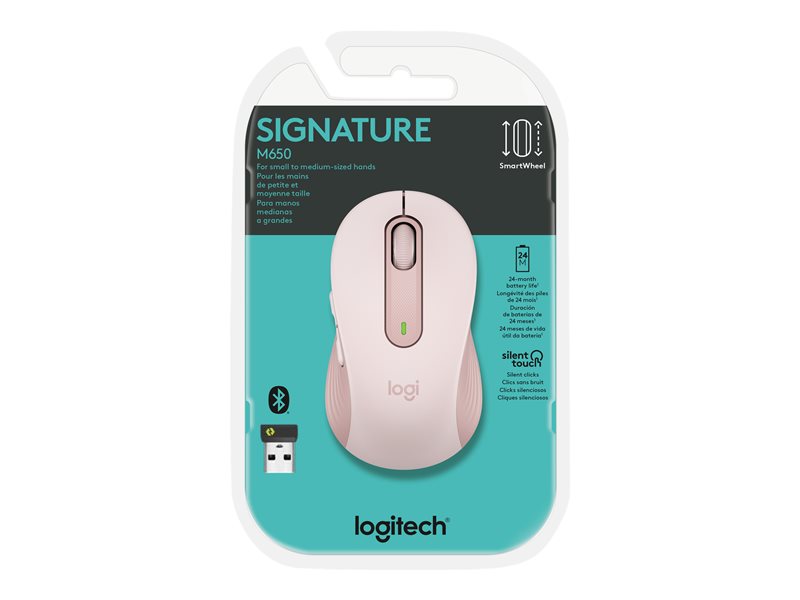 | Product Description | Logitech Signature M650 – mouse – small hands – Bluetooth, 2.4 GHz – rose |