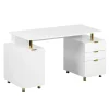 Techni Mobili – Elegant Executive Desk with Gold Accents – 3 Drawers- Cabinet with Adjustable Shelf – Ventilation – CD-4991D-WHT