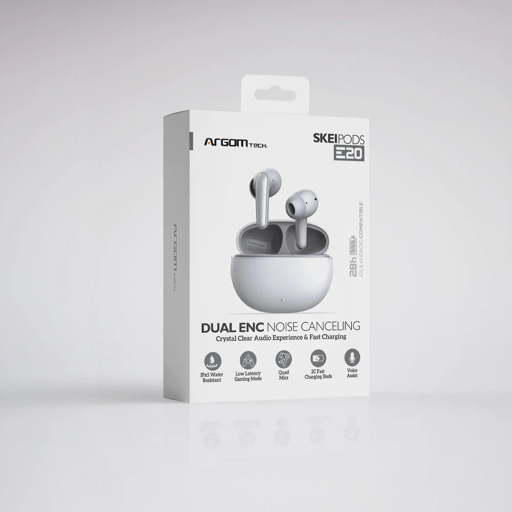 SkeiPods E20 True Wireless Stereo Bluetooth Earbuds with Dual ENC Noise Canceling - White