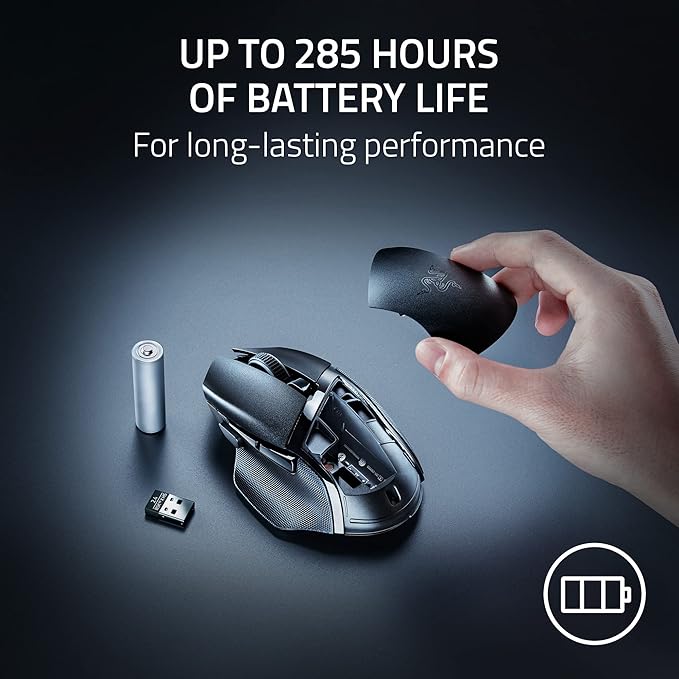 | Features | Programmable buttons, Razer mechanical switches, 60 million clicks, Razer Chroma RGB, Razer Hyperspeed Wireless technology, Razer 5G advanced optical sensor, on-board memory profile, 100% PTFE mouse feet |