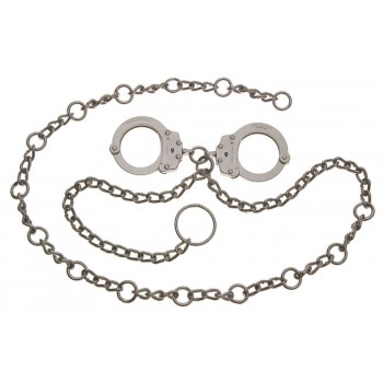The Model 7003C Waist Chain is designed for high security transportation, courtroom and processing situations. The Model 7003C Waist Chain has a set of Model 700C Chain Link Handcuffs positioned at the navel allowing for limited use of the hands. The special heat treated steel chain and padlock rings assure adjustment up to 54 in. waist. Lifetime warranty for manufacturer defect. Two keys supplied. Made inUSA.